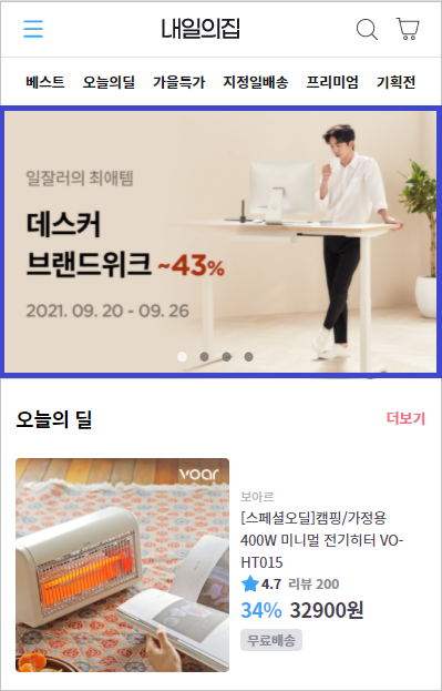 ๋ฉ์ธ ํํ์ด์ง ์๋จ์์ญ์ ๋ค์ด๊ฐ ์บ๋ก์